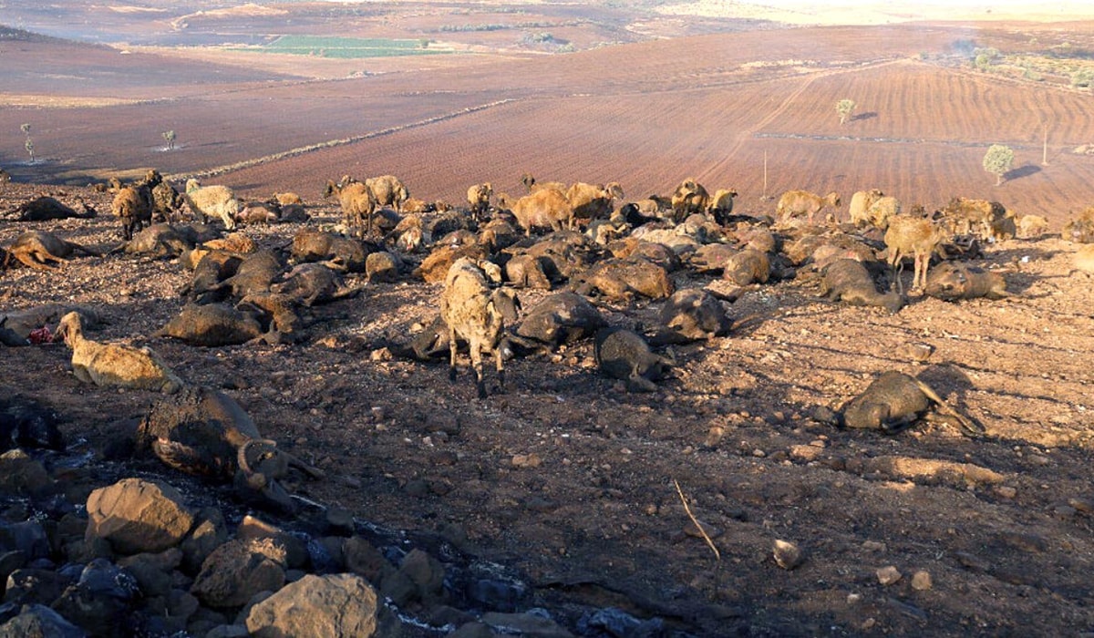924 küçükbaş hayvan telef olurken, ağır yaralı 83 küçükbaş hayvan da ölmek üzere olduğu için kesime gönderildi. 1 traktör ve 14 adet sulama tesisinin de küle döndüğü belirlendi.